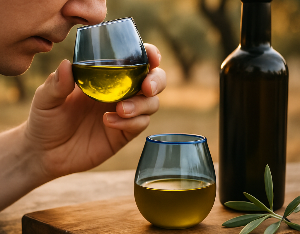 Beim Probieren: nimm erst einen kleinen Schluck, schwenke das Öl leicht, atme und schlucke dann — achte dabei auf Unterschiede zwischen Nase und Gaumen. Übung macht den Meister: Probiere verschiedene gute Öle, um Deine Sensorik zu schulen.